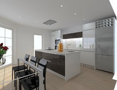 (1) comentariosLa situación de un fregadero, no viene determinada por la existencia o no de isla. Incluida la misma y por criterios inspirados por ella, basta con elegir el sitio, donde resulte más dificil y sea mas costoso. En cocinas sin isla hemos vivido y en generaciones anteriores, no era algo que se echase de menos, luego la experiencía, no dicta su empleo. Si se emplea la dichosa isla, debe dotarse de fregadero, cocción, zona de trabajo y preparación, campana de extracción, etc....Ver másDistribucion de cocina-salon en atico