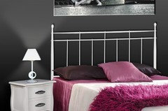 En un espacio pequeño, nosotros apostaríamos por un cabecero de forja de diseño sencillo y ligero. Lo puedes combinar con unas mesitas de madera que tengan los tiradores a juego con el cabecero. Tienes la ventaja de poder escoger una gran variedad de colores tanto para el cabecero como para las mesitas.