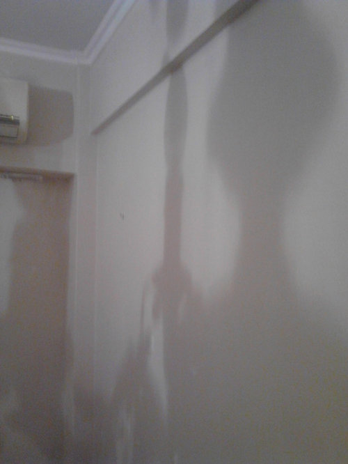 el espejo que va enfrentado a la cama cubre aproximadamente un 50% de la pared, va sobre la cómoda