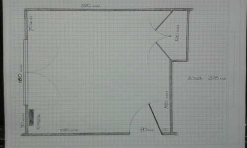 ahí les muestro un boceto de como es la distribución de la habitación, la altura de la misma es de 3,28 metros y lo que quiero es aprovechar esta altura para poder distribuir el mobiliario infantil y algún otro que pueda poner para las visitas que suelo tener.