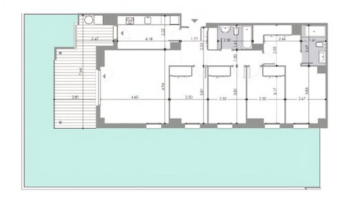 En la esquina superior izquierda vamos a poner una bancada haciendo esquina y la cocina lleva abierta una ventana como pasaplatos.