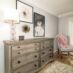 Cool color of Burke Raffia bed and Meade nightstand go well with gray paint and silver accents