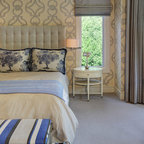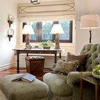 Overall look kind of like this, but much lighter and brighter fabric for the curtains and a less ruffled shade.