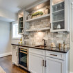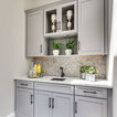 Get rid of closed cabinets and leave all open shelving. I like the background wall too.