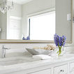 I like this large slab of stone as a back splash. Probably very expensive, but it makes a statement