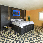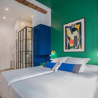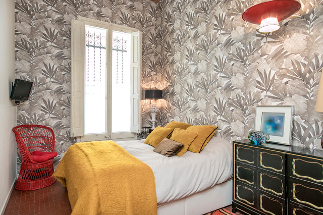 3. Papel pintado con motivos vegetales en el dormitorioEspecialmente en la pared del cabecero veremos cómo el papel pintado gana espacio, como corroboran las fotos más guardadas por los usuarios de Houzz España. En los dormitorios también gana fuerza “una estética ecléctica en la que no faltan rotundos golpes de color en accesorios como lámparas, cojines, etc”, afirma la interiorista Elisabet Brion.