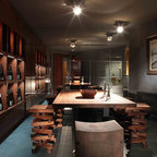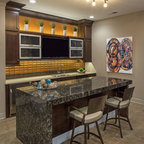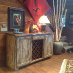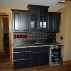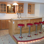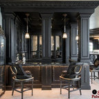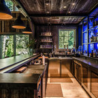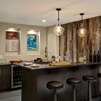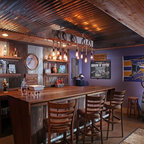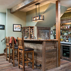 Ejemplo de bar en casa con barra de bar en L rústico — Houzz
