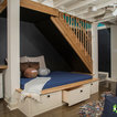 Junto a este espacio, se ha instalado un escritorio doble para que los niños tengan un rincón donde hacer los deberes. Para cuando hayan acabado con sus tareas y sea el momento de jugar tienen un billar y una diana.