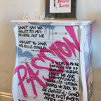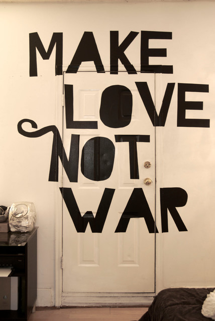 Stick a message on the wall. Yes, I said stick, not paint. This crafty renter used a projector to display the message across a door and wall, so she could trace it onto black contact paper. The contact paper can be peeled off, so this is a perfect project for renters, or if you want to test out an idea before committing to it with paint.