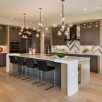 Floor with greyish-green tint cabinet color