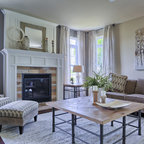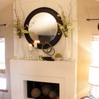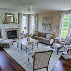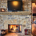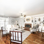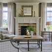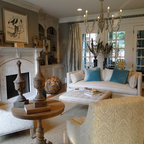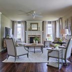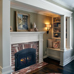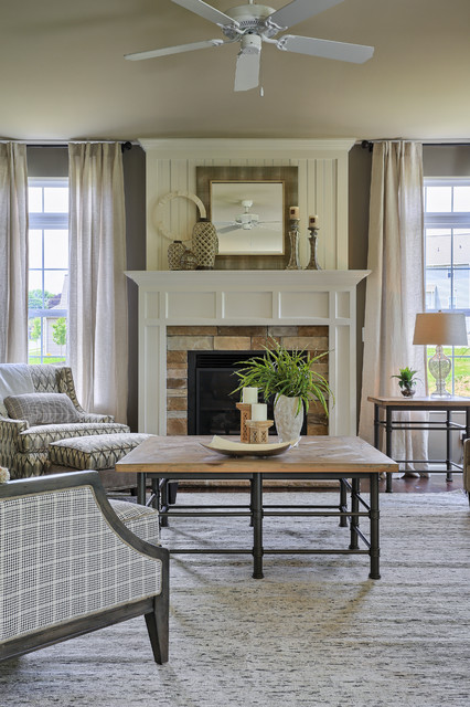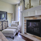 Ejemplo de salón para visitas clásico con chimenea tradicional, marco de chimenea de piedra, paredes grises y suelo de madera en tonos medios — Houzz