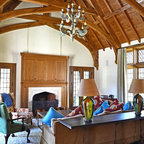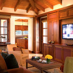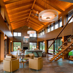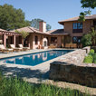 A house for a family of four, including entry hall, living room, formal dining room, a large kitchen with informal dining, mud room, family room, formal library, master bedroom and bath, a bedroom suite for each of the two children, and a guest suite with access to the garden. Site development included a pool with pool house and spa.