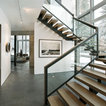 Glass railing on floating stair