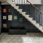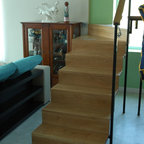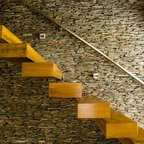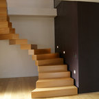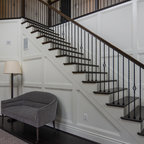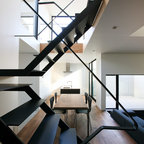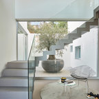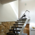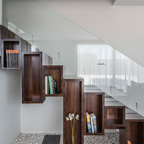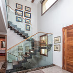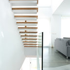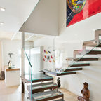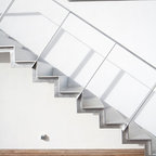 Modelo de escalera en U, contemporánea, con barandilla de vidrio — Houzz