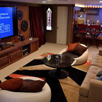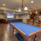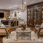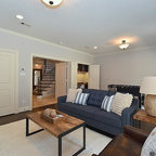 Diseño de sótano con puerta tradicional renovado, de tamaño medio, con paredes grises y moqueta — Houzz