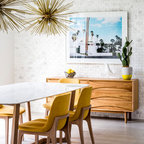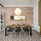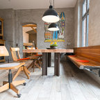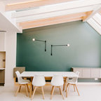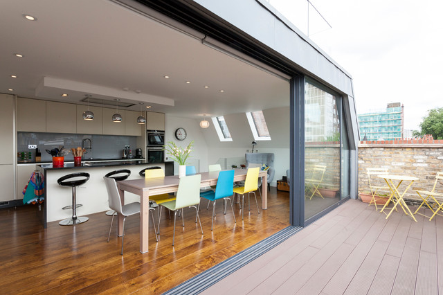 Loft, London Repetition: The repetition is seen in the hairs surrounding the table, the lamps above the kitchen table and the chairs around the kitchen table.