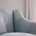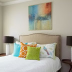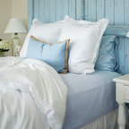 Love the soft colors in this room. Used two pillows on each side on the bed, al large European square and a regular bed pillow (probably a king pillow.) Props you ups for reading bu only two spare pillows to deal with.