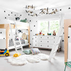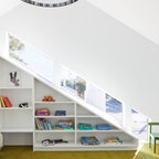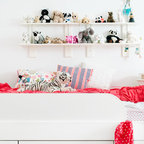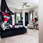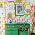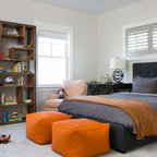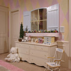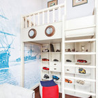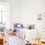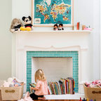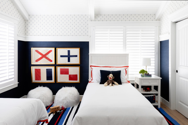 Ejemplo de dormitorio infantil de 4 a 10 años, clásico renovado, de tamaño medio, con paredes multicolor, suelo de madera en tonos medios y suelo beige — Houzz