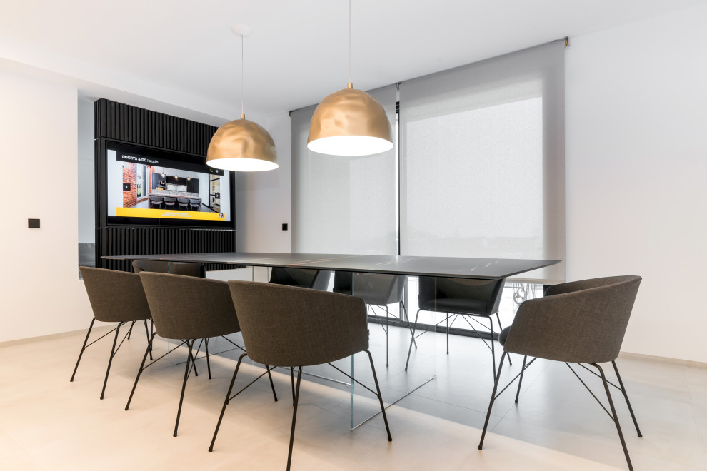 COCINA SANTOS NEGRA Y ROBLE CON ISLA ABEIRTA AL SALÓN