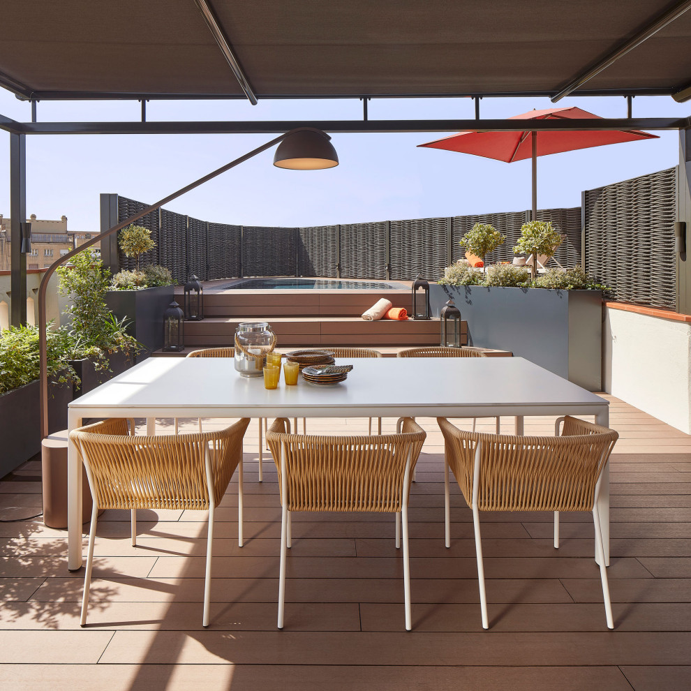 Ciertamente, Barcelona es una ciudad que cuenta con una meteorología privilegiada durante gran parte del año. Por esa razón, Molins Design diseña esta terraza con piscina en un ático.