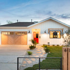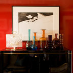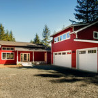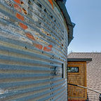 Designed as a series of barns for an extended family, this home has spectacular views from all sides. It is organic, built into the landscape, and is contemporary in style, but warmed by the use of color, stone, and antique wood flooring. The interior is an open space, which serves as a backdrop for the client's wonderful collection of art and objects.