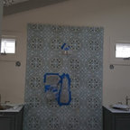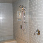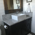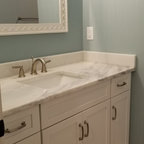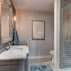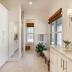 Modelo de cuarto de baño campestre con puertas de armario blancas — Houzz