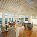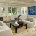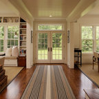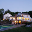 The home's exterior was designed to emulate a traditional rambling colonial farmhouse, integrated with the land to look like it has always been there. The open floor plan gives a contemporary feel to the interior while boasting myriad traditional details. Seen in "Hot Property", Berkshire Living, November 2007.