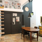 general shape of room but do not have u kitchen - just have on one wall - width of room and have a loft bedroom on the far end of the room