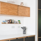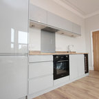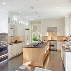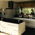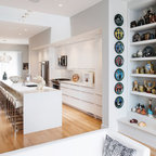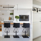 Kitchen and the white bit in the middle can be an opening to a laundry and butlers and end with a window