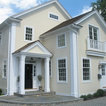 Pale gravel smooth driveway. Picks out white wood and soft yellow walls