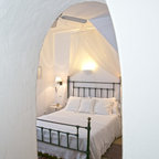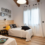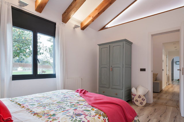 El armario ropero, al igual que la consola del recibidor, es un mueble antiguo que se ha pintado para incorporarlo sin estridencias en la estancia. La redistribución de los espacios, que eliminó al máximo los pasillos y las puertas, consigue una pequeña salita de estar extra entre los dormitorios.En las zonas de noche las ventanas se visten con cortinas, para dar un toque cálido. Son caídas en linos, en tonos piedra y beige. Mientras que en las áreas de día se apuesta por un moderno screen enrollable en un tono marrón chocolate.Las ventanas pueden vestirse de muchas formas. Te contamos cuál es la más acertada