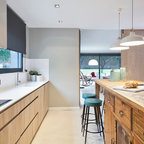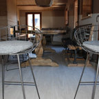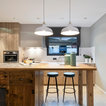 El parqué de madera clásica y de tonos suaves, incluso ruda, es una opción perfecta para las decoraciones rústicas. Amuebla el espacio con una mesa y unos taburetes que también sean de estilo rústico pero más actual, así además podrás introducir en la escena una sillas y otros complementos de diseño contemporáneo que hagan el ambiente más moderno y equilibrado.Los 8 mandamientos del Nuevo Rústico