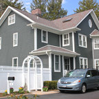 house colors sierra madre and eagle ridge = sherwin williams; trim is long john red - Ralph Lauren