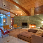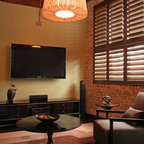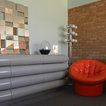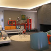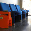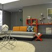 Umbo Shelving Along a nearby wall stand shelves and an X-shaped magazine rack constructed from pieces of ABS plastic that snap together in combinations limited only by the imagination. U.S. designer Kay Leroy Ruggles created this modular Umbo shelving system for New York-based Directional Industries, which introduced it in 1970. It came in four colors — orange, yellow, white and brown — and had early success, especially among apartment dwellers. But rising oil prices contributed to the system’s downfall.