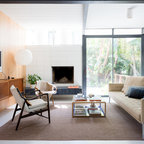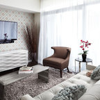 I like the organization of this one. Consider repeating this look by using a similar chair against the back wall, with two accent chairs don't like the coffee table in this one