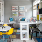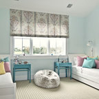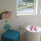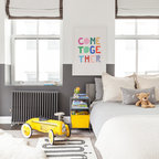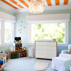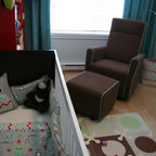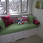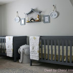 elephant theme nursery is enhanced with vintage alphabet blocks that have been refinishes and a cozy window seat.