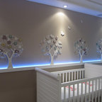 El gris es también protagonista en este otro dormitorio, un tono muy utilizado en habitaciones de bebés ya que es neutro y unisex. Aquí, la pared principal que se corresponde con el cabecero de la cuna se ha decorado con un papel pintado de elefantes blancos en fila india, que la recorren de arriba abajo. Una especie de “senda de los elefantes”, que seguro que al pequeño le gustará contemplar desde su cuna mientras concilia el sueño.¿Y TÚ?¿Cuál de estas propuestas te ha gustado más para decorar un cuarto infantil? Cuéntanoslo en los comentarios