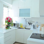 Los muebles empotrados son la mejor opción para las cocinas mini. Si prolongas los armarios superiores hasta el techo, lograrás 30 cm como mínimo de espacio adicional para guardar cosas.¿Y TÚ?¿Estás encantado con tu pequeña cocina? Publica su foto y háblanos de ella en los comentarios.