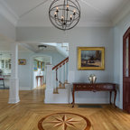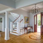 Cummings Architects transformed this beautiful oceanfront property on Eastern Point. A bland home with flat facade from the eighties was torn down to the studs to build this elegant shingle-style home with swooping gables and intricate window details. The main living spaces and bedrooms all have sprawling ocean views. Custom trim work and paneling adorns every room of the house, so that every little detail adds up to to create a timeless and elegant home.