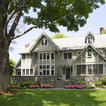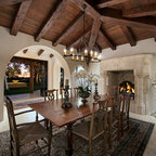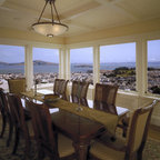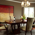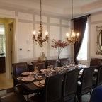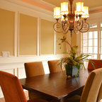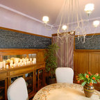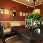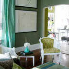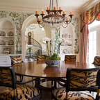 Imagen de comedor clásico con paredes verdes y suelo de madera oscura — Houzz