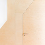color del suelo, con pared color arena, puertas blancas y ventanas marrones