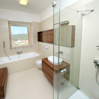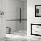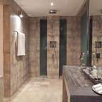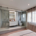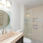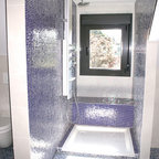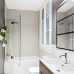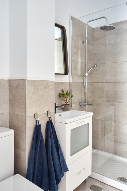 Modelo de cuarto de baño con ducha, actual, pequeño, con baldosas y/o azulejos grises y baldosas y/o azulejos de cerámica — Houzz