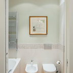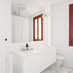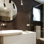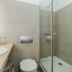 Modelo de cuarto de baño con ducha, actual, pequeño, con baldosas y/o azulejos grises y baldosas y/o azulejos de cerámica — Houzz