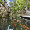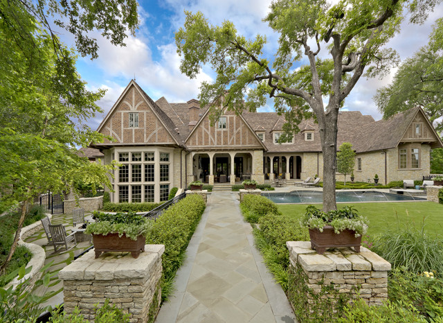 Beautiful English Tudor home and gardens located in Dallas, Texas featuring lush gardens, swimming pool, koi pond, fire pit, motor court and private gardens.