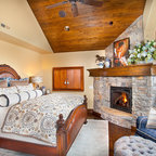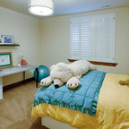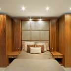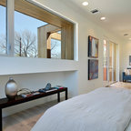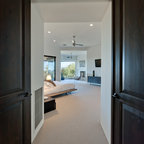 Imagen de dormitorio principal, actual, de tamaño medio, sin chimenea, con paredes beige y moqueta — Houzz