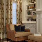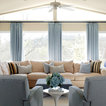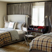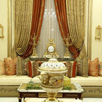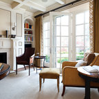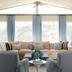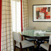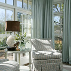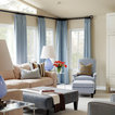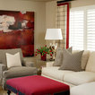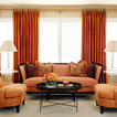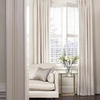 Drapes over shutters, sofa and chairs