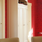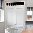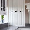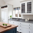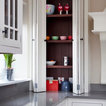 White top cupboard with glass against Bone White walls.
