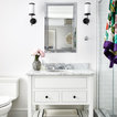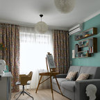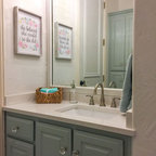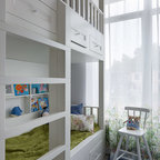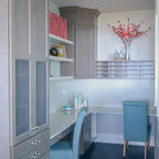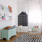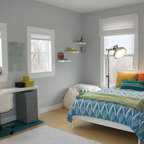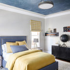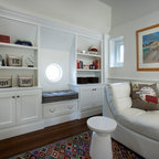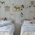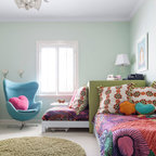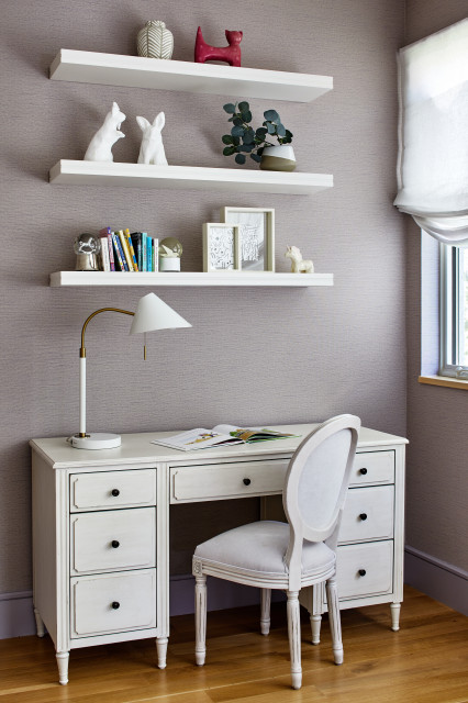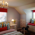 Foto de dormitorio infantil tradicional renovado, de tamaño medio, con paredes púrpuras, suelo de madera en tonos medios y suelo marrón — Houzz