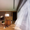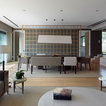 En el plano decorativo prima una elegante sobriedad, basada en el empleo de tonos neutros en piezas esenciales hechas a medida, en escogidos tejidos naturales y en contadas luminarias de pantalla blanca. La riqueza del mármol portugués de Cascais en color gris envolviendo la chimenea es quizá la única concesión al exceso, ya que todo está enfocado a la practicidad.