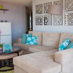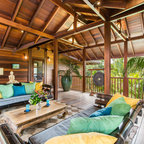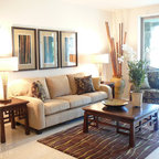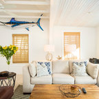 Diseño de salón tropical con paredes blancas y suelo blanco — Houzz